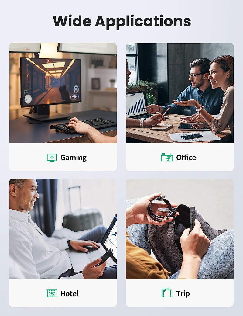 Widely Compatible: With the RJ45 connectors, UGREEN Cat 8 internet cables is universally compatible with networking switches, computers, laptops, routers, ADSL, network adapters, hubs, modems, PS5, PS4, X-box 360, X-Box One, Switch, patch panels and other networking devices.